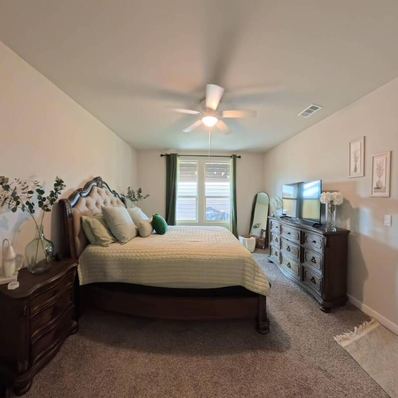 Morning Glow: Wake up to the gentle Texas sun. The expansive windows ensure this room is always bright, airy, and full of positive energy.